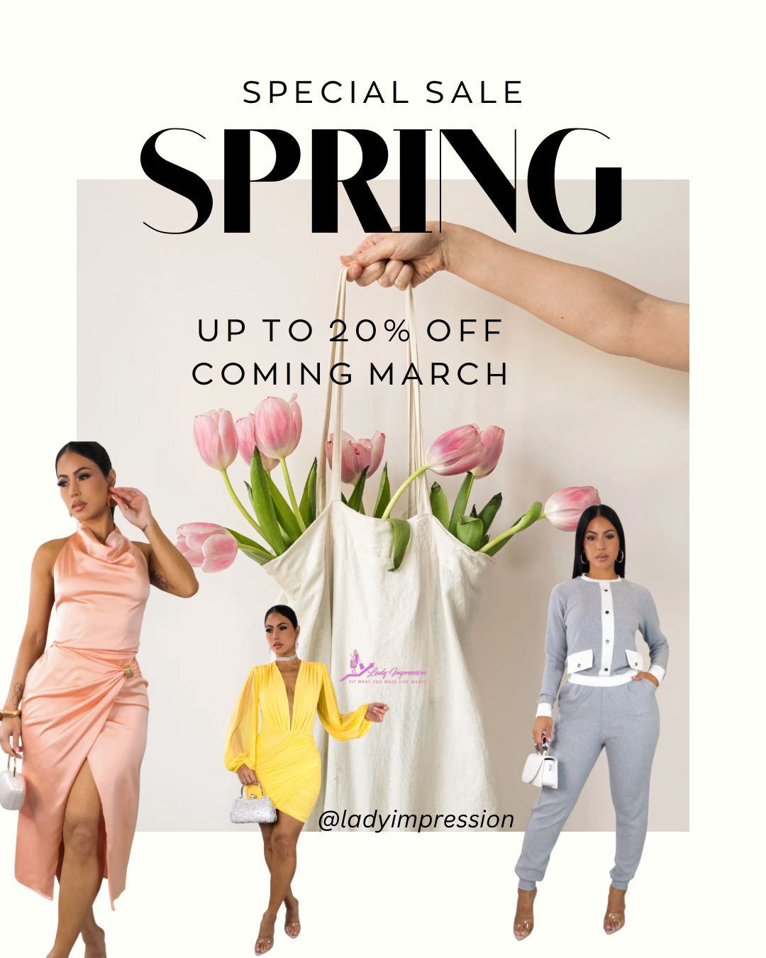 Comfortable attire is so important ‘sometimes it is hard to find a seasonal wear and that’s why we are here to help you on that one curiosities with fashion . Pre sales are the best option by pre ordering , main reason limited orders on certain products ‘ good part’ is ! it’s always restock in time for you to “Step out with a new look & feel ! Spring coming who is ready for some cute mini Dresses , shorts , maxi dresses, skirts sets and etc .(Don't everyone say “Me” at once lol )